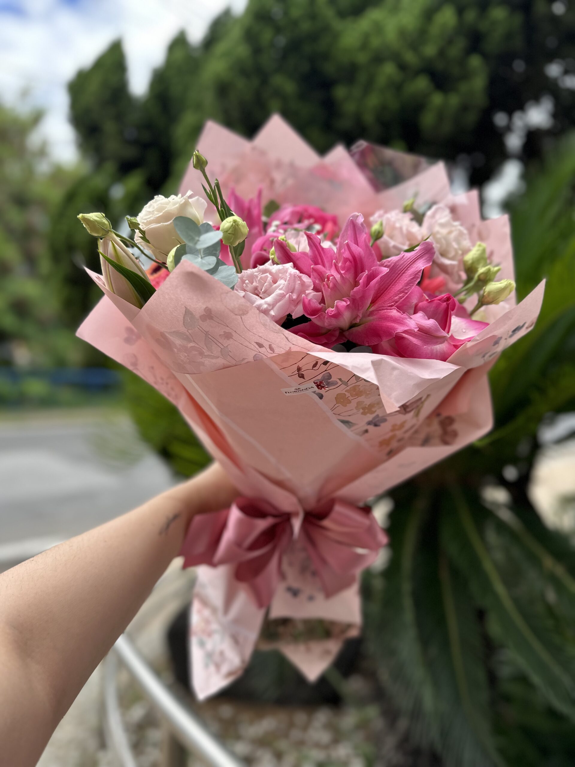 Buque com 12 Flores do Campo cor de Rosa Estilo Coreano